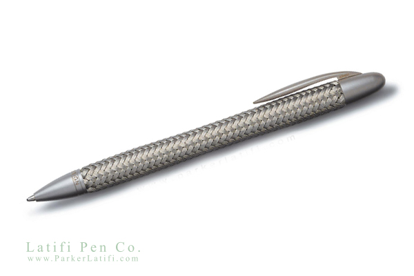 The weave of the ball pen consists of stainless steel threads. Front and end parts are made of brass and finished with a high-quality Palladium coating. Special Feature: If you push the mechanism of the ball pen the stainless steel weave contracts. After the refill appeared, the weave releases and goes back to its origin position.